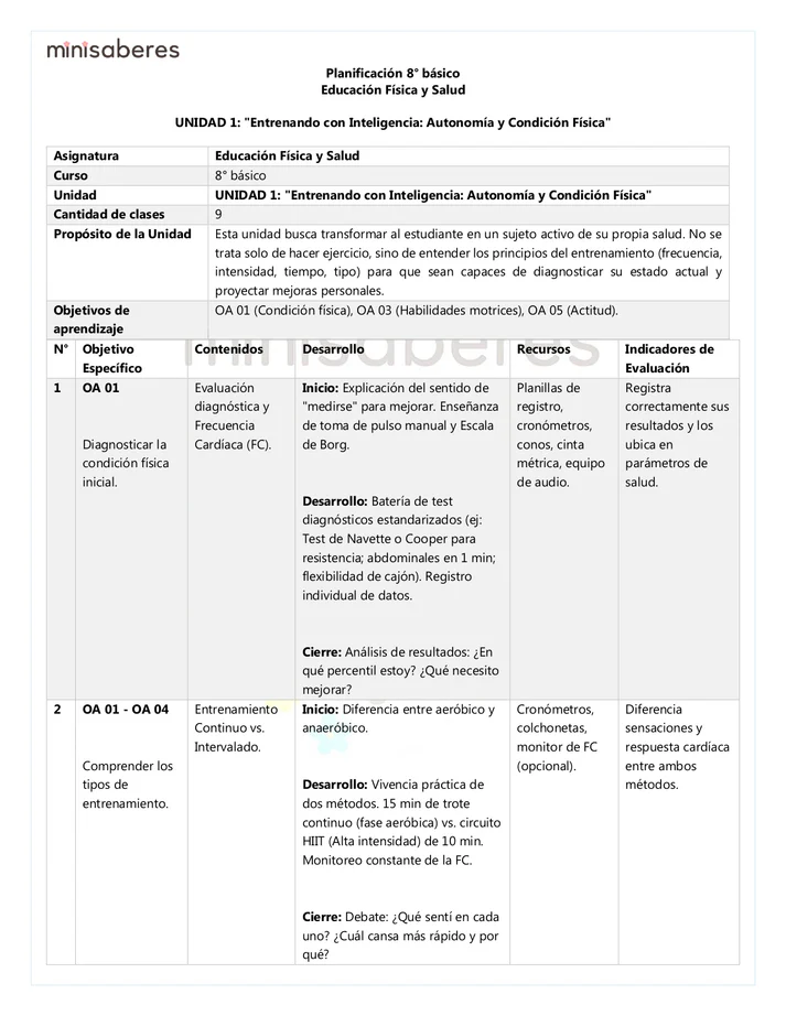 - ✔️ Cobertura completa de los Objetivos de Aprendizaje de Educación Física y Salud para 8° básico