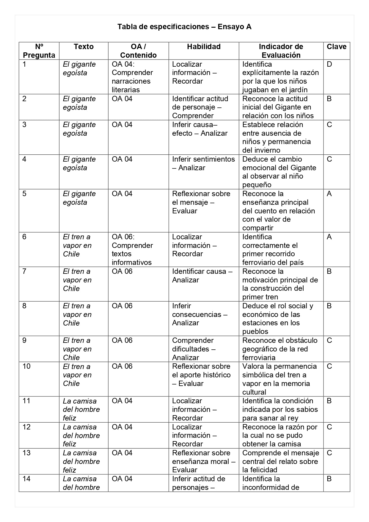 Cada pregunta fue verificada en contenido, redacción y clave correcta, asegurando la concordancia con los textos, los indicadores de evaluación y el lenguaje pedagógico chileno.