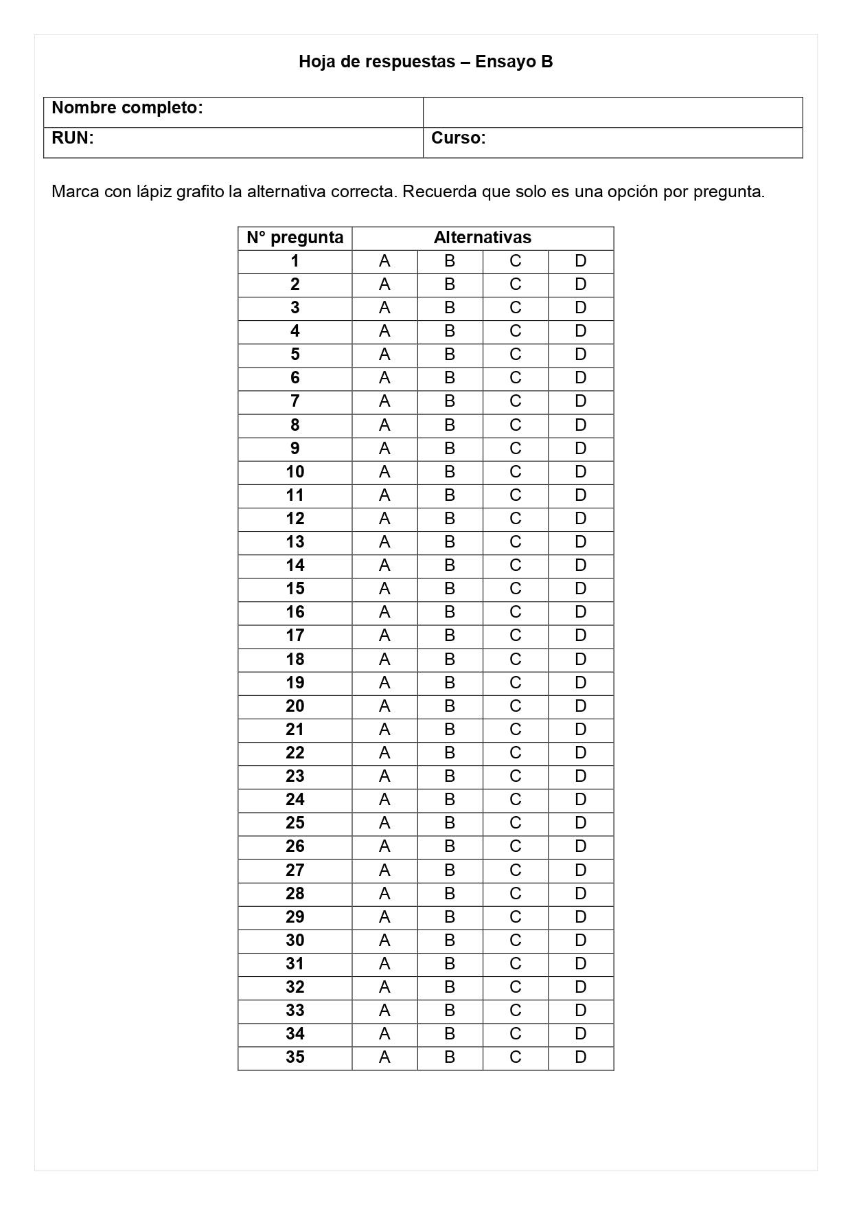 35 preguntas alineadas a la matriz SIMCE.