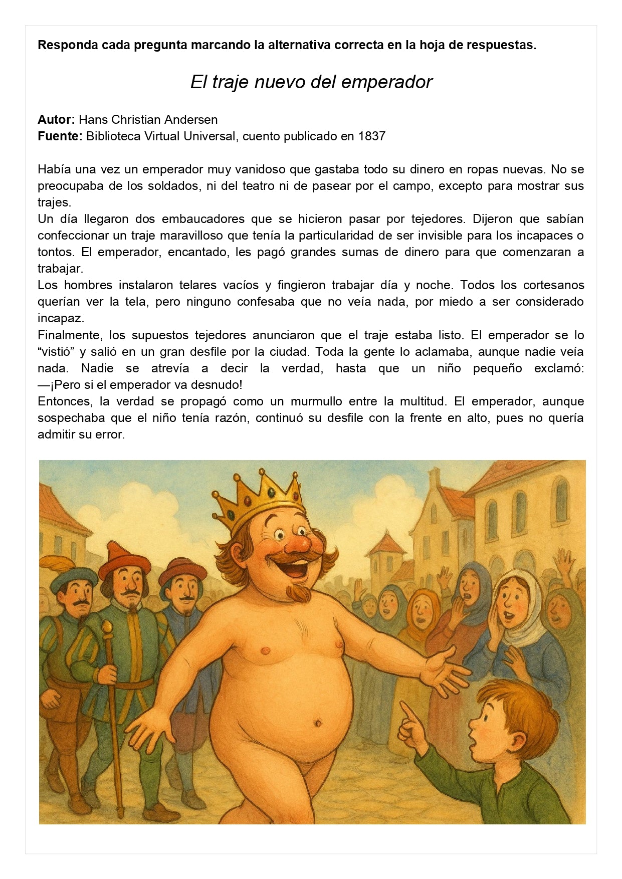 Perfecto para aplicar en aula, talleres de comprensión lectora o simulacros de evaluación.