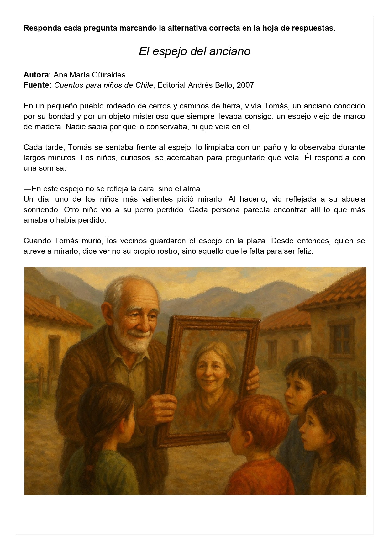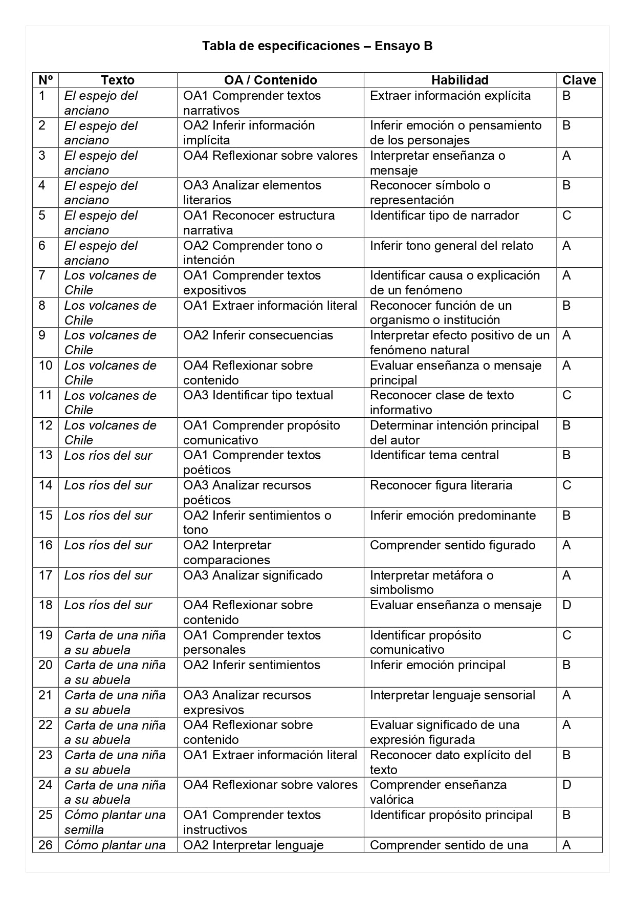 Cada pregunta fue verificada en contenido, redacción y clave correcta, asegurando la concordancia con los textos, los indicadores de evaluación y el lenguaje pedagógico chileno.