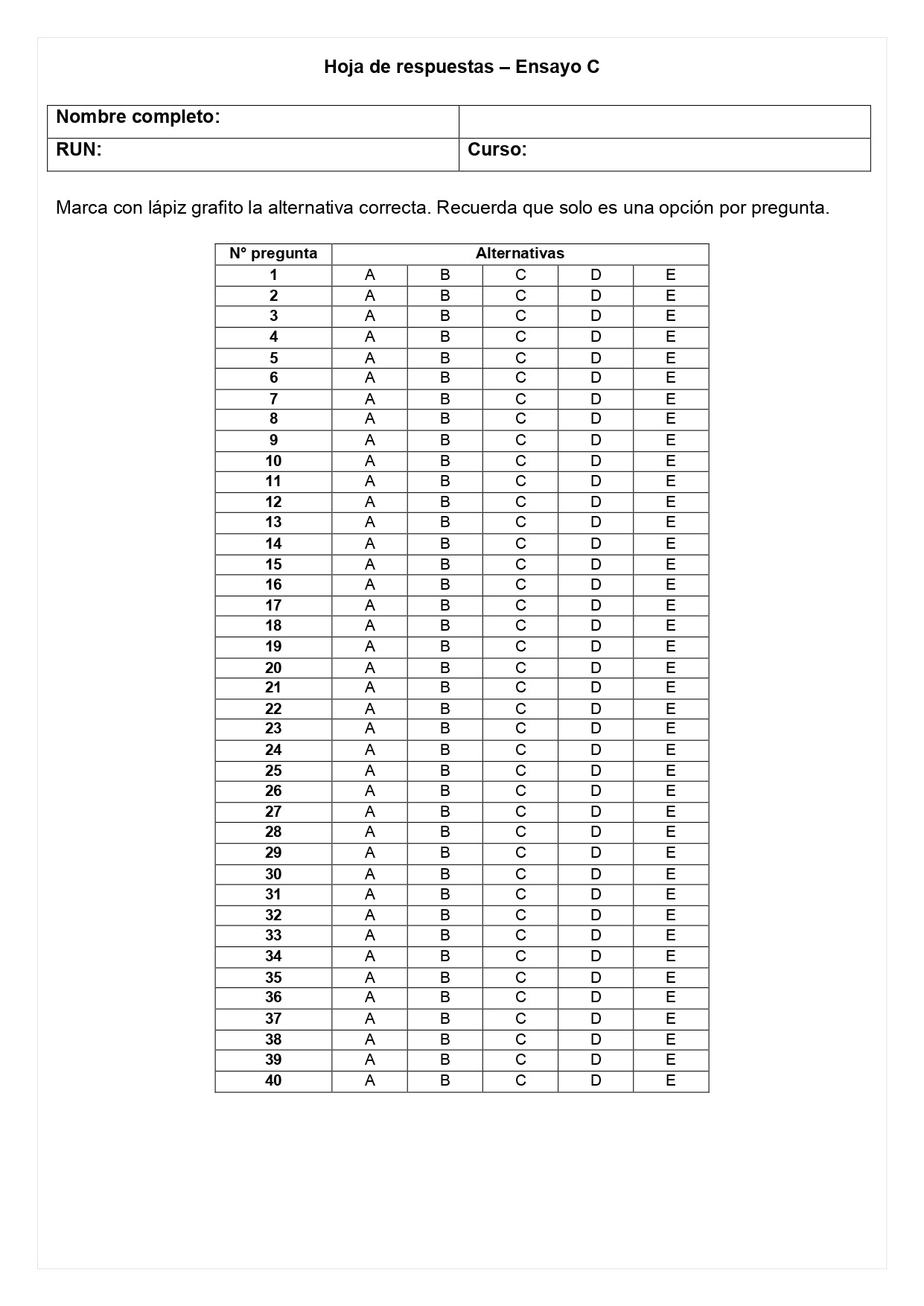 Cada ensayo ha sido cuidadosamente planificado, redactado y validado para asegurar rigurosidad conceptual, coherencia curricular y ausencia total de errores, ofreciendo una evaluación equilibrada y representativa de los ejes y objetivos de aprendizaje del nivel.