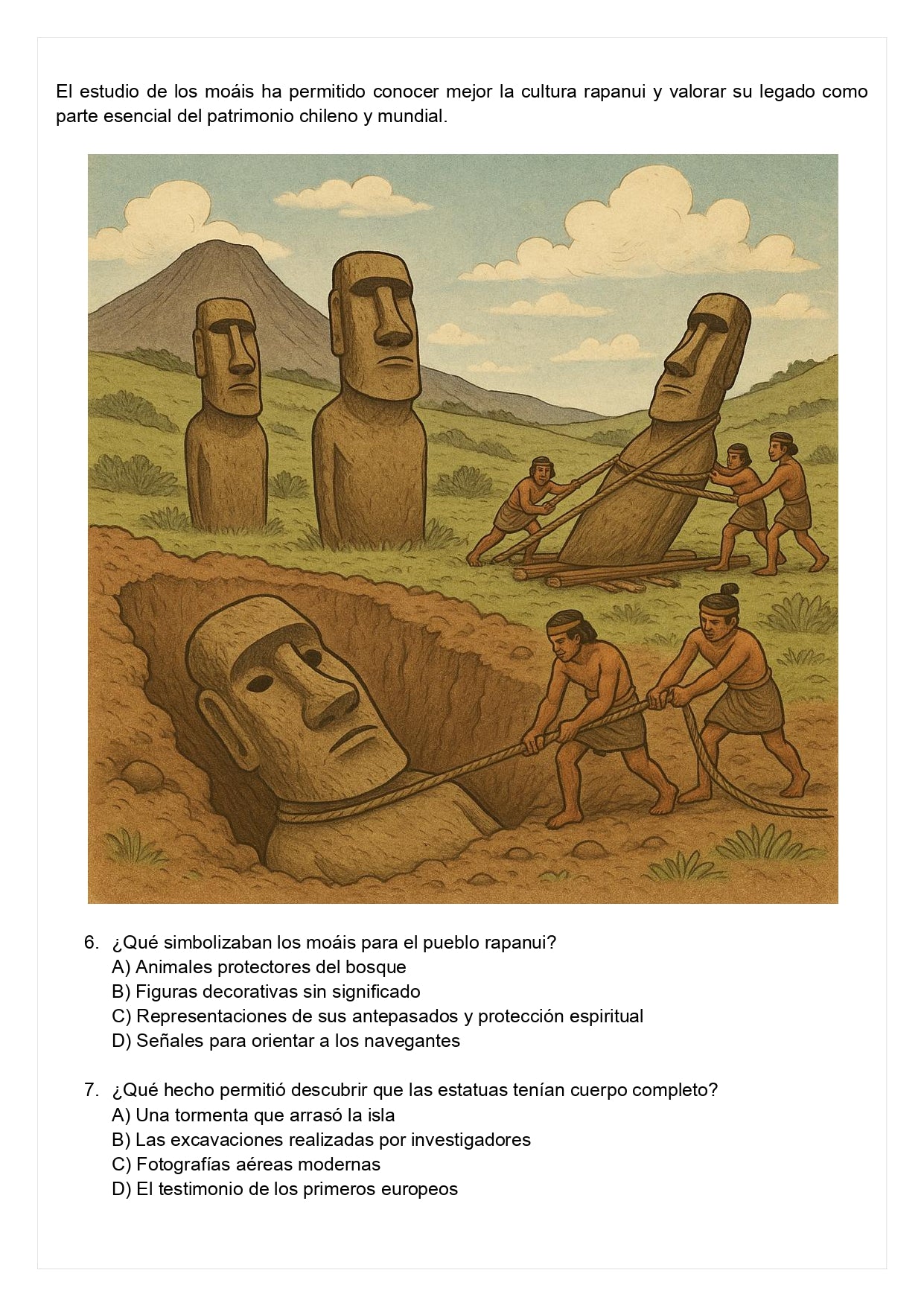Cada pregunta fue verificada en contenido, redacción y clave correcta, asegurando la concordancia con los textos, los indicadores de evaluación y el lenguaje pedagógico chileno.