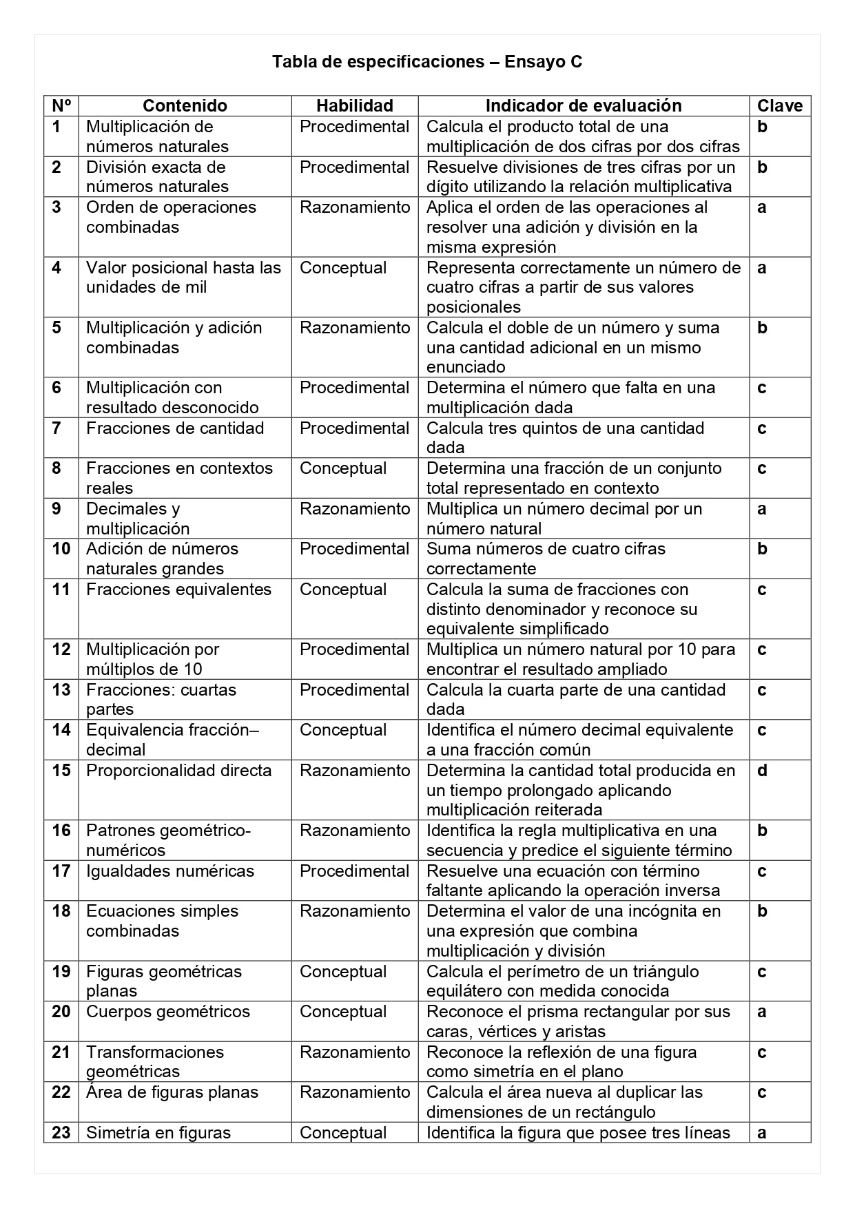 🧮 Ensayo SIMCE Matemática 4° Básico – Ensayo C