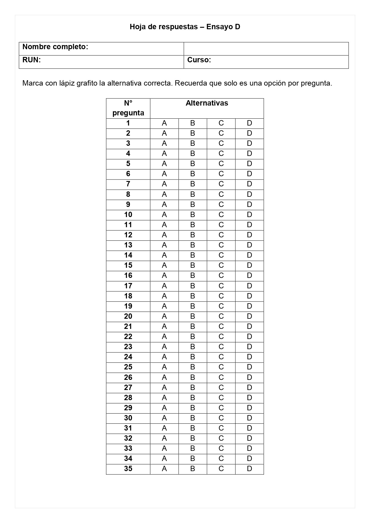 35 preguntas alineadas a la matriz SIMCE.