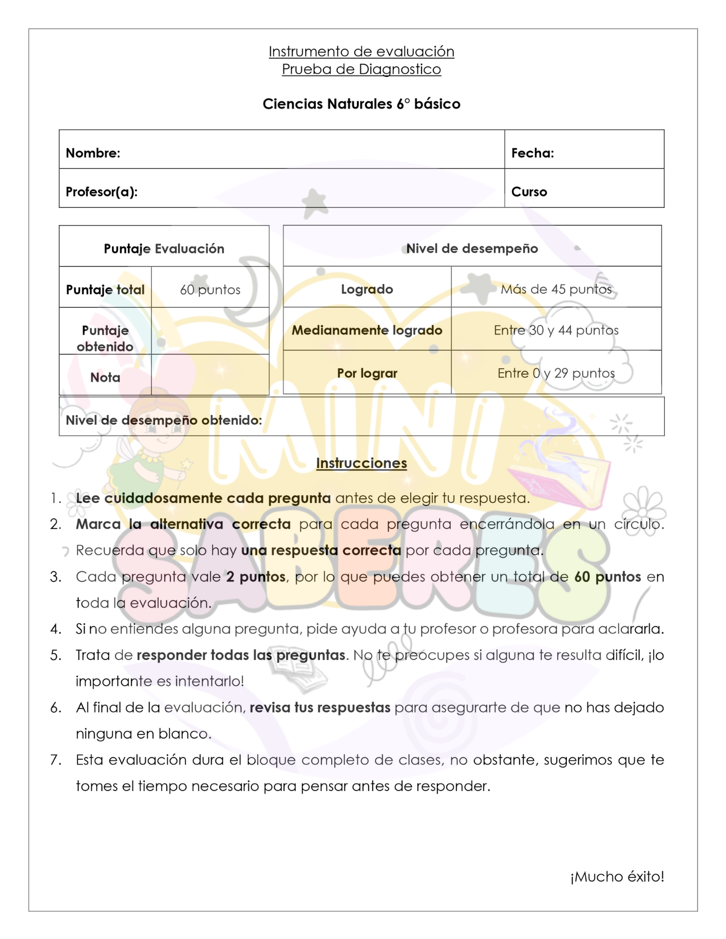 Evaluación Diagnóstica - Ciencias Naturales (CN) 6° básico