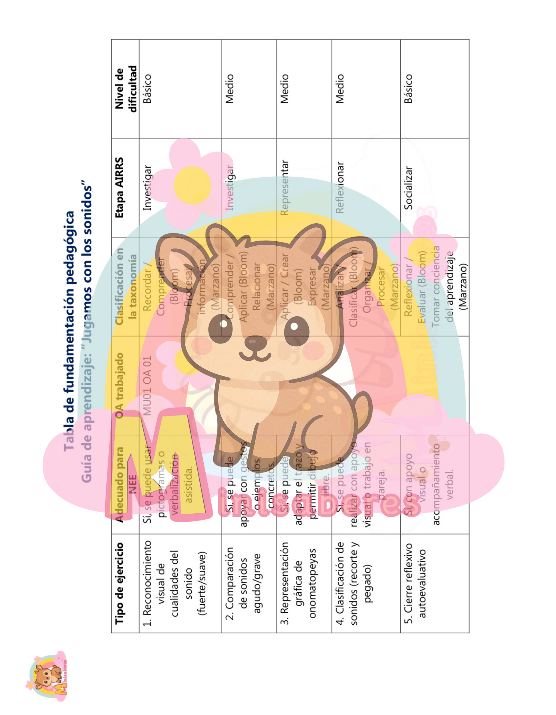 📊 Incluye tabla de fundamentación pedagógica, con los siguientes elementos: