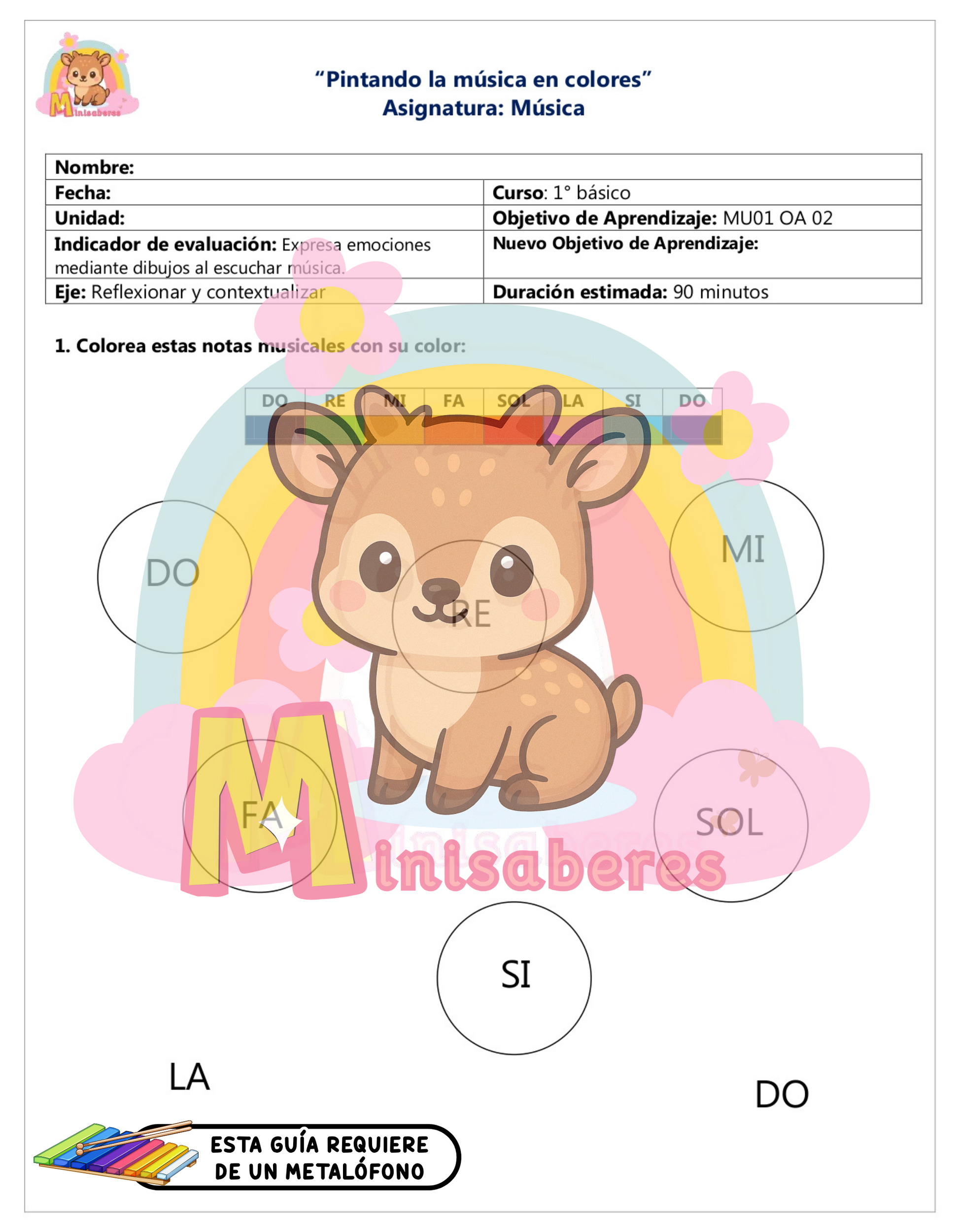 🎶 Guía de Aprendizaje: Pintando la música en colores – Música 1° básico