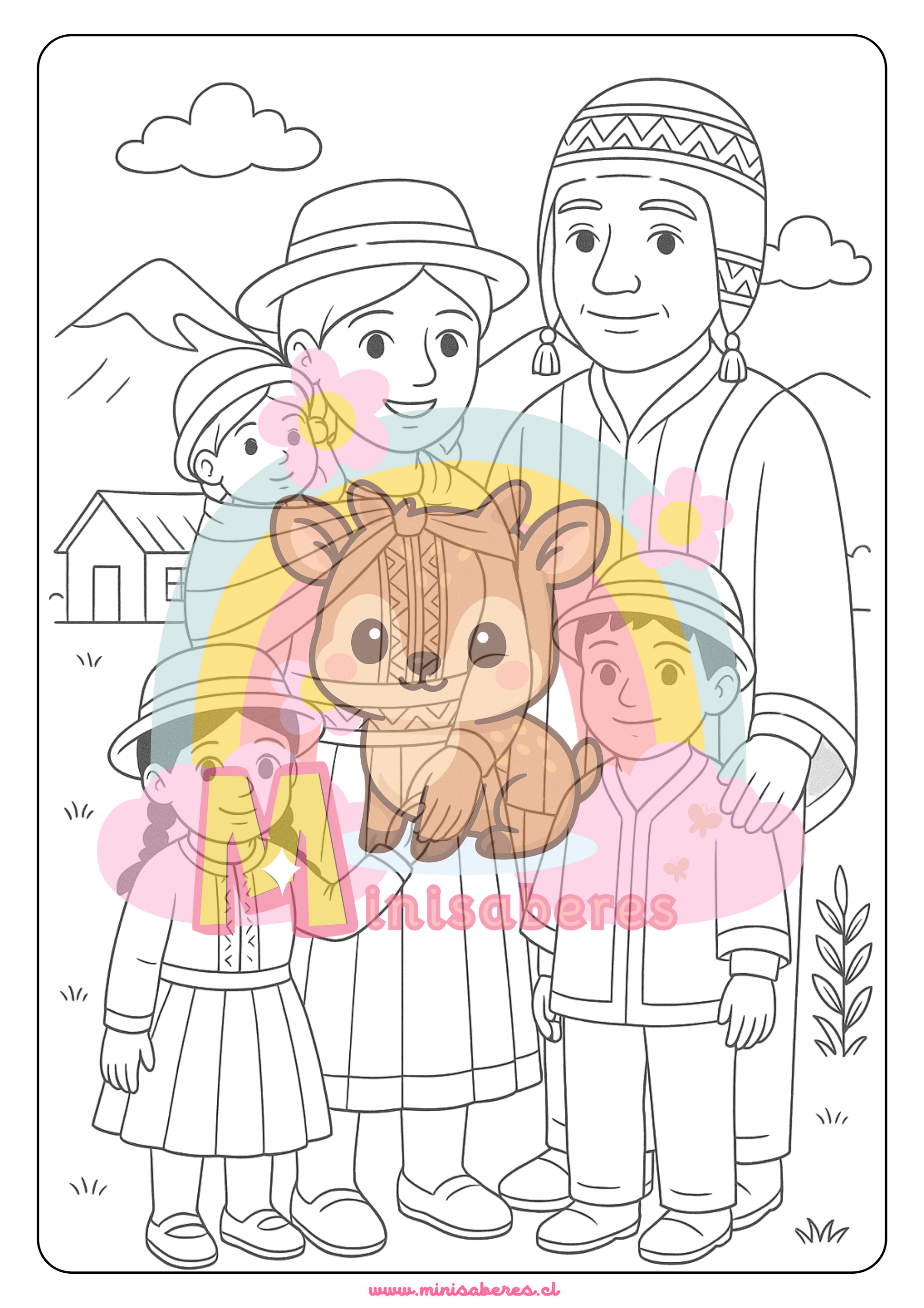 Este recurso descargable incluye 10 láminas ilustradas para colorear, pensadas especialmente para niñas y niños de 1° básico, con foco en el Pueblo Quechua. Puede ser utilizado en la asignatura de Lengua y Cultura de los Pueblos Originarios Ancestrales o en Artes Visuales.