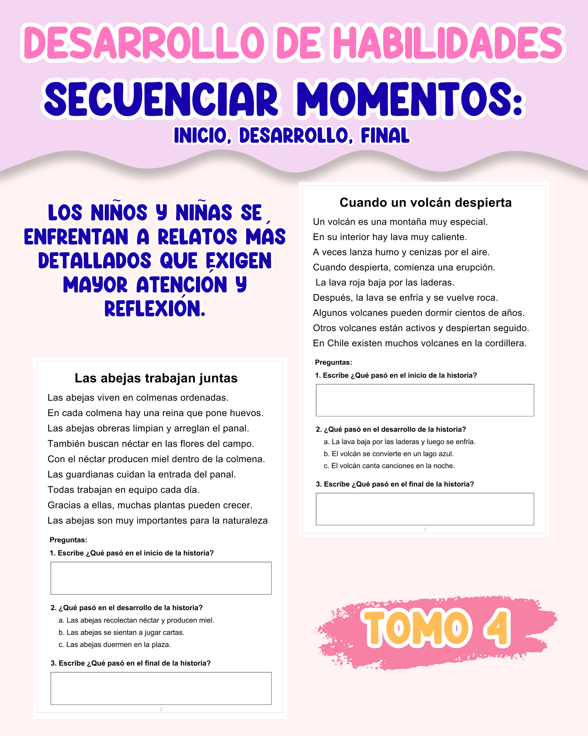 ✔️ Cada tomo incluye 10 hojas de trabajo con textos y preguntas abiertas o guiadas, según el nivel.