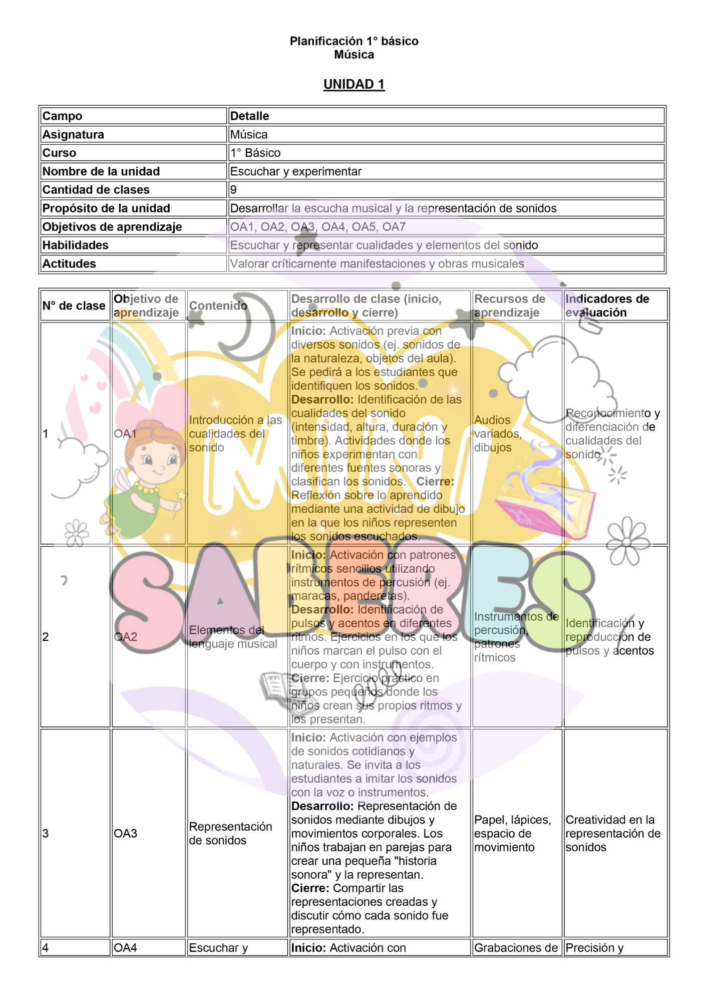 ¡Planifica sin estrés tus clases de Música para 1° Básico!