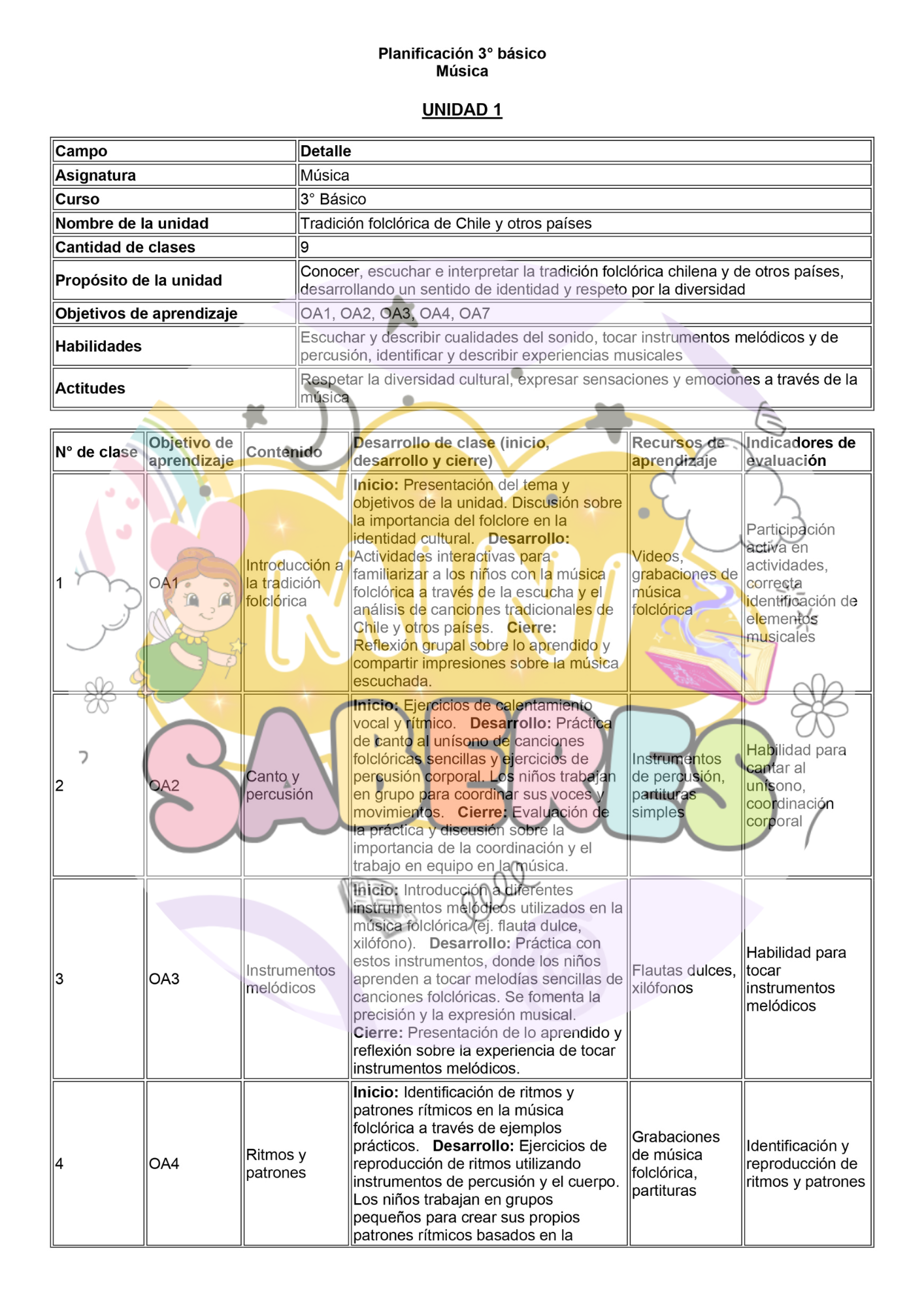¡Planifica sin estrés tus clases de Música para 3° Básico!
